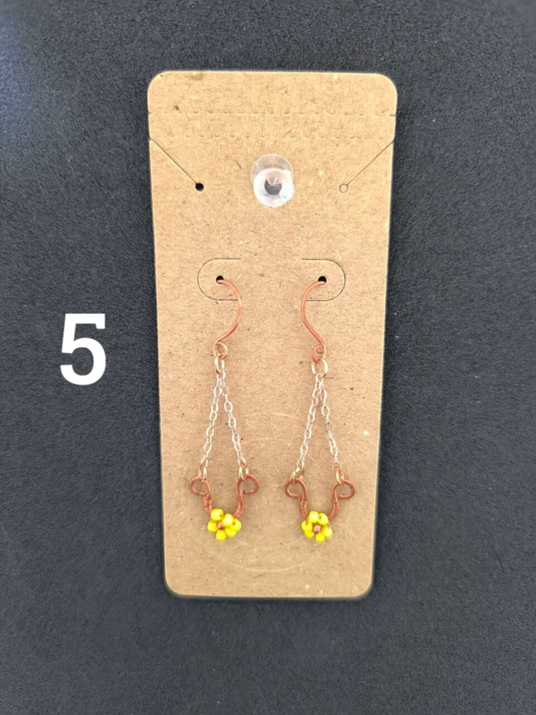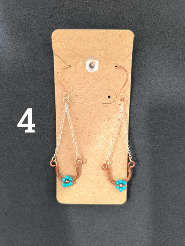 Handgemaakte oorbellen gemaakt van koper en kralen
