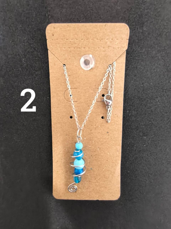 Handgemaakte ketting van RVS en kralen, past bij de oorbellen van foto 1
